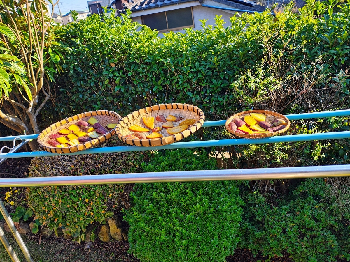 蒸して、切って干すだけで美味しいおやつが出来ます。